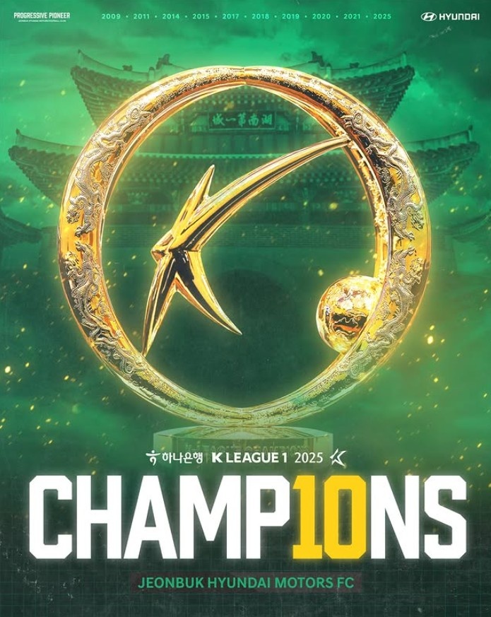 这支曾九次捧起K1联赛冠军奖杯的球队,时隔四年再次问鼎,成为K1联赛历史上首支夺得十个以上冠军的队伍。同时,全北现代在第33轮就锁定冠军,追平了他们在2018年创下的最快夺冠纪录,展现出统治级的实力。