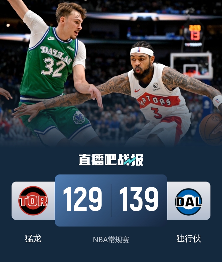 在个人数据方面,独行侠的戴维斯表现抢眼,砍下25分、10个篮板,外加3次助攻和3次抢断。拉塞尔同样表现出色,贡献了24分、5个篮板以及6次助攻。弗拉格也有22分、4个篮板和4次助攻的优异表现。另一方面,猛龙的巴恩斯在比赛中成为最闪耀的明星,拿下33分、11个篮板和6次助攻,英格拉姆也贡献了22分和6次助攻。然而,尽管有多名球员表现不俗,猛龙依然未能止住败局。