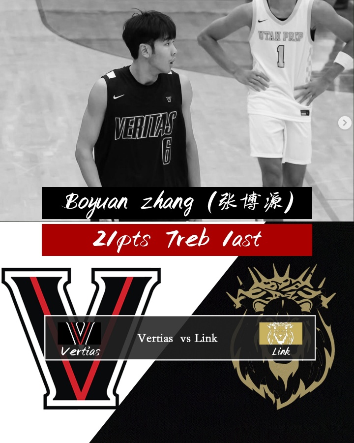 在面对Link Academy这样一支近几年稳定在全美高中排名前五的位置的强敌时,Veritas Academy显得力不从心。这场比赛,Veritas的核心后卫Jalen Grant因伤缺席,使得队伍在整体实力上受到明显压制,张博源的发挥也受到了一定的影响。尽管如此,他依然展现出了不俗的个人能力与拼搏精神。