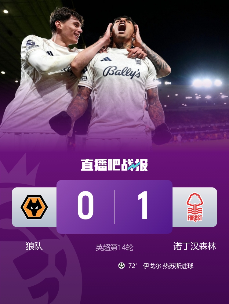 12月4日讯,英超第14轮中,狼队在莫利诺克斯球场迎来了诺丁汉森林的挑战。比赛上半场,伊戈尔·热苏斯的进球因越位被判无效。下半场,尽管内科的任意球被对方门将神勇扑救,但热苏斯在随后的时刻再次斩获进球,最终帮助森林以1-0赢得胜利。目前,狼队已经遭遇八连败,仅积2分继续在积分榜垫底,而诺丁汉森林以15分名列第16。
