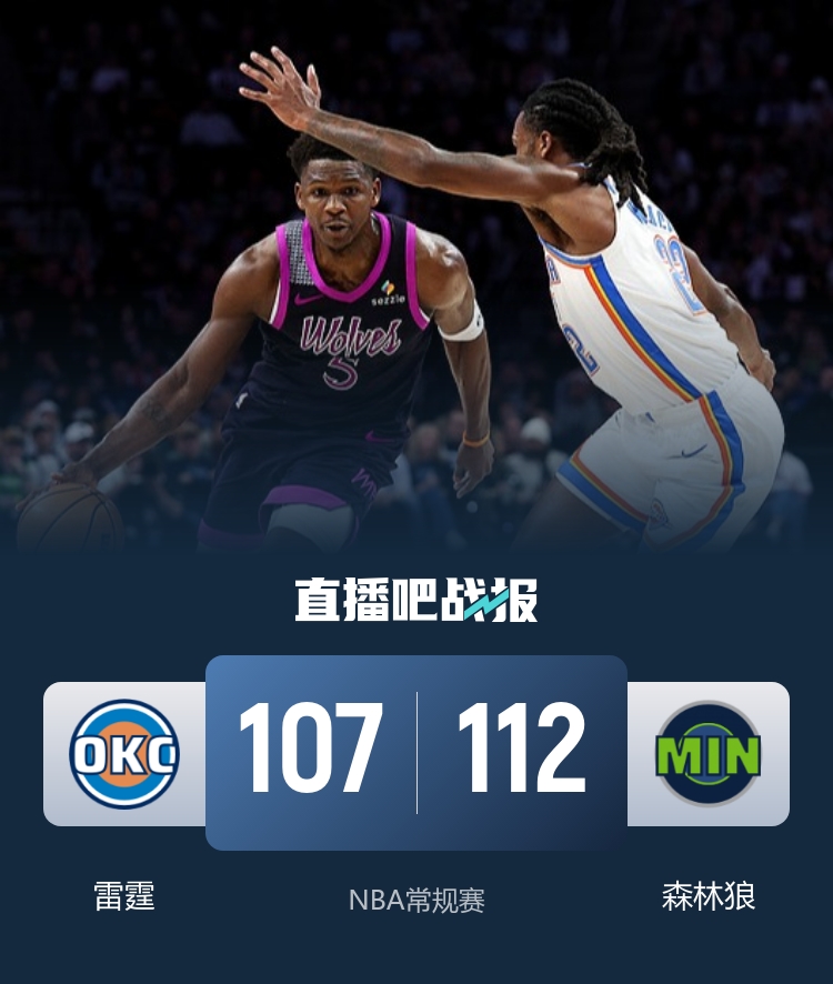 12月20日讯 NBA常规赛继续进行,联盟领先的雷霆队前往明尼苏达与森林狼队交手。本场比赛,爱德华兹复出,备受关注。