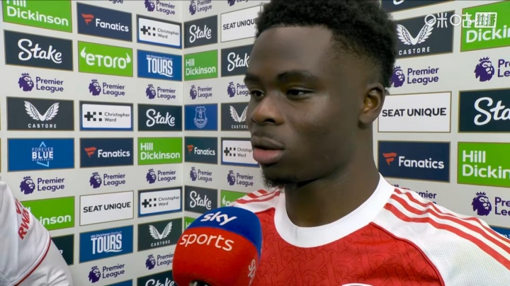 在英超第17轮比赛中,阿森纳客场以1-0战胜了埃弗顿。赛后,阿森纳前锋萨卡接受了媒体的采访。