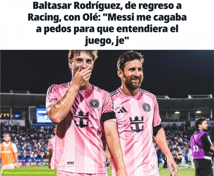 22岁的阿根廷中场巴尔塔萨尔·罗德里戈斯在结束了在迈阿密国际的租借生涯后,重返阿根廷竞技俱乐部。他最近在接受《奥莱报》采访时,分享了与梅西一起训练和生活的点点滴滴,令人感受到他对这位足坛巨星的敬仰。