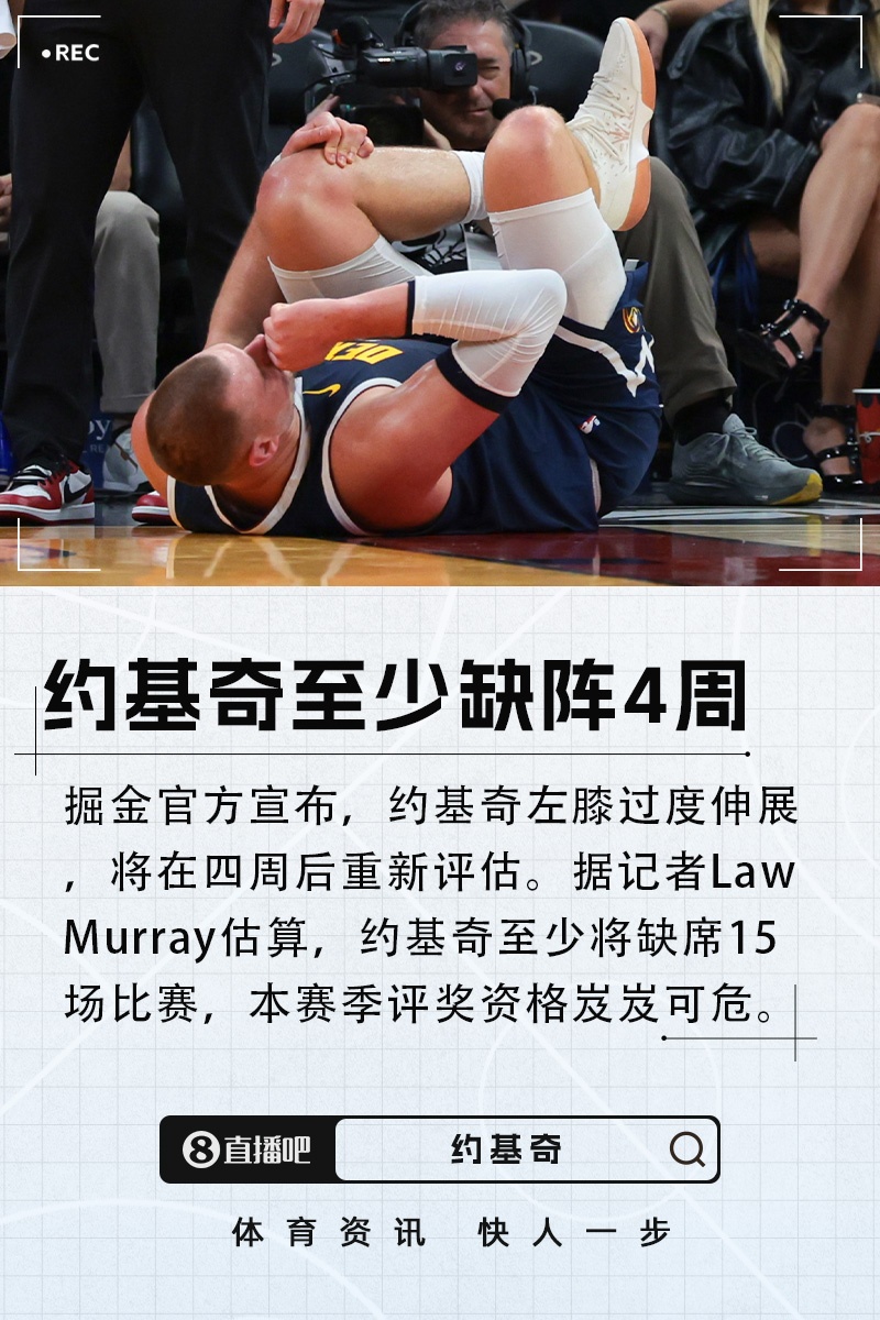 在日前对阵热火的比赛中,掘金的巨星约基奇遭到了来自队友斯潘塞·琼斯的“亲情伤害”,结果使他的左膝受了点小伤,这下子可真是个悲剧。根据知名记者Shams Charania的报道,约基奇这次左膝过度伸展,预计将缺席至少四周的比赛,不过庆幸的是,他的韧带没有受到伤害。想必这也是约基奇心里的一点安慰,毕竟在NBA的残酷竞争环境中,能够保住韧带就是一种小确幸。