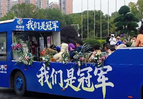 2025年1月2日,湘超总决赛上,永州队以1-0战胜常德队,荣获冠军。为了庆祝这一辉煌时刻,永州队的球员们于去年12月28日乘坐花车回城,受到市民热烈欢迎。据极目新闻报道,这辆敞篷花车是由公交车经过“削顶”改造而成。