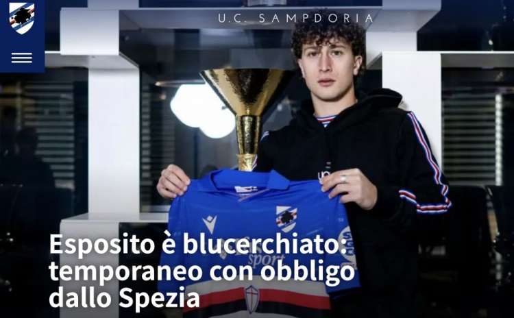 意大利足球甲级联赛的桑普多利亚俱乐部于1月5日正式宣布,他们以租借后再买断的方式签下了中场球员萨尔瓦托雷·埃斯波西托。根据俱乐部官方网站的信息,协议中提到,萨尔瓦托雷将在租借期结束后以强制买断的方式转会至桑普多利亚,合同将持续至2030年6月30日,并附带俱乐部优先续约一年的权利。