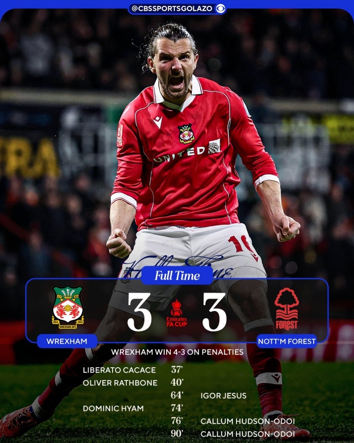在这幅充满戏剧性的画卷中,雷克瑟姆的英雄们再次书写了他们不屈的传奇。在英格兰足总杯第3轮的较量中,这支刚刚升入英冠的球队,与诺丁汉森林展开了一场惊心动魄的对决。最终,在经历了常规时间的3-3平局后,雷克瑟姆在加时赛和点球大战中展现出无畏的精神,成功闯入下一轮。