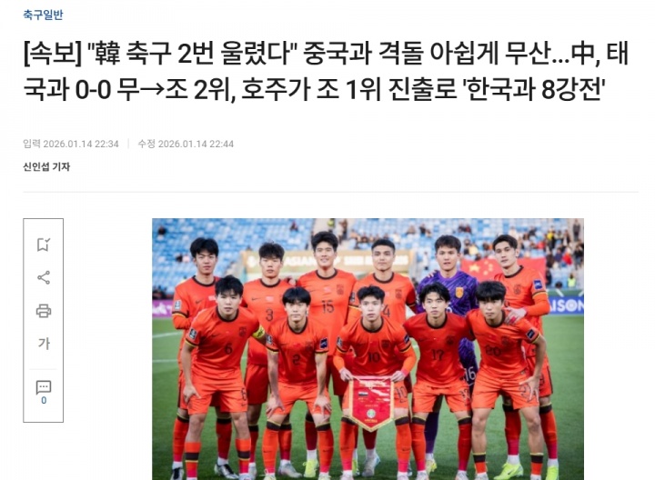 1月14日报道,中国U23队在与泰国队的最后一轮比赛中以0-0战平,历史上首次成功晋级淘汰赛阶段。这是一项了不起的成就,尤其是面对拥有强大实力的对手时。在这场平局后,大家感到振奋,但与此同时也有些遗憾,因为期待的中韩对决并未如愿在下一轮上演。