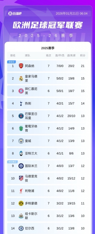 在1月21日的欧冠联赛阶段第7轮中,热刺于主场以2-0战胜多特蒙德,喜获胜利,成功跃升至积分榜的第四位。本赛季,热刺在欧冠赛场上表现相对出色,经过7场较量收获4胜2平1负,展现了其强大的韧性与实力。