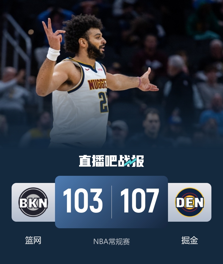 经过短暂的调整,掘金的进攻突然间变得冷淡,小波特冒死连中几记三分,生生把分差一点点蚕食回来。三节结束时,掘金还勉强守住3分的微弱优势。进入决战的末节,掘金再次猛如虎,把优势进一步确立,没想到篮网还是固执地想要缩小差距。关键时刻,穆雷果然没有掉链子,连续单挑得手,但瓦兰的两罚全中直接了结,一场107-103的比赛就这样悄然结束,篮网痛苦地收获了七连败。