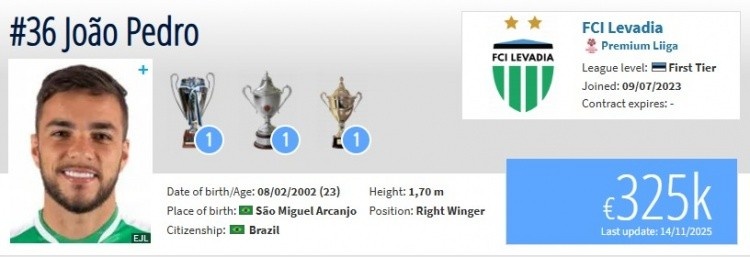 若昂·佩德罗身价32.5万欧元,曾效力于巴拉纳竞技,并在塞浦路斯的帕福斯俱乐部留下过印记。最近两年,他在爱沙尼亚的塔林利瓦迪亚表现出色,连续两季都有超过15个进球和助攻的佳绩。他的经验还包括参加过欧冠和欧协杯的资格赛,这为他在中超的征程增添了不少光彩。