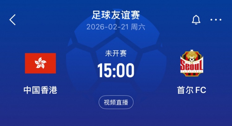 2月3日,中国香港足球总会发布消息,宣布“贺岁杯2026足球赛”将于2月21日(农历新年初五)下午3点在中国香港大球场进行。届时,中国香港足球代表队将与来自韩国职业联赛的首尔FC队展开激烈对决。