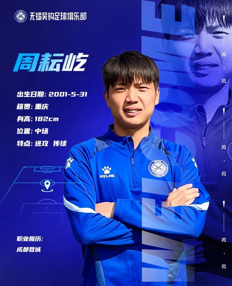 无锡吴钩足球俱乐部在不断追求进步的道路上,持续为2026赛季的中甲联赛壮大阵容,今日喜讯频传:俱乐部正式与中场球员周耘屹和中后卫王子豪完成签约,同时成功租借边后卫艾力库提·艾沙江。这三位中后场实力悍将的加入,必将为球队提供坚实的防线与战术上的多样性,他们的到来将为无锡争取佳绩注入新的动力!
