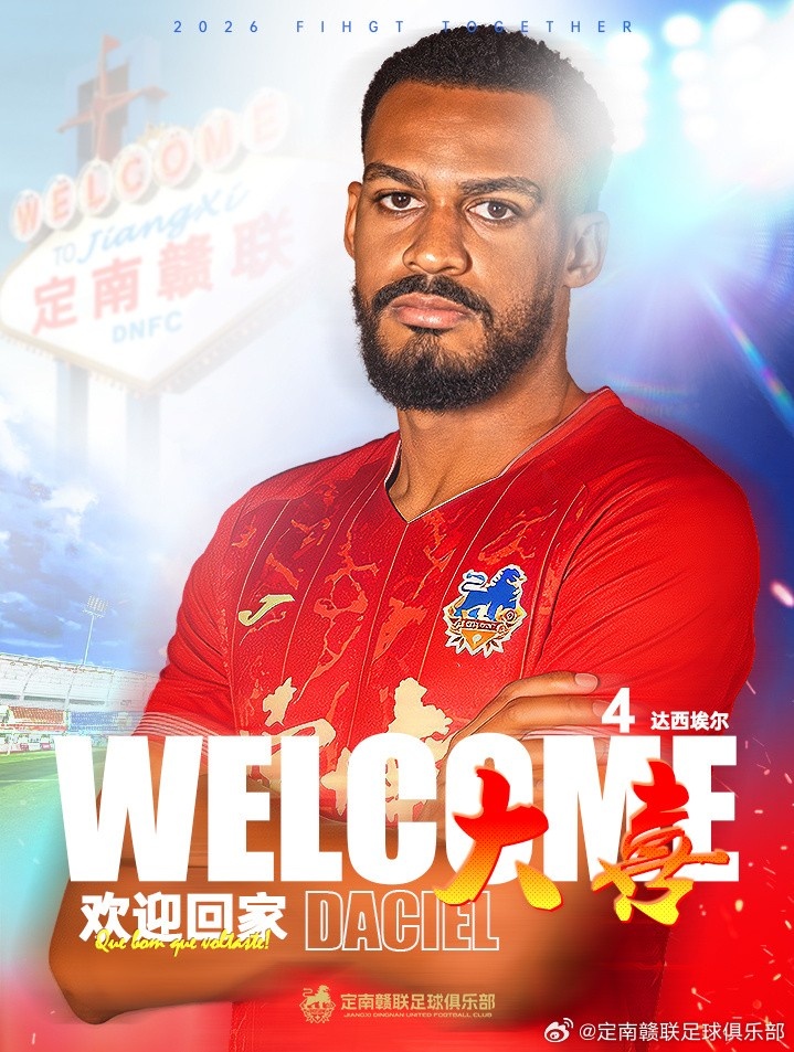 在2026赛季,达西埃尔选择转会至定南赣联,他将身穿4号球衣,为球队在中甲联赛中贡献力量。全体队员以及球迷们纷纷热烈欢迎他的加入,期待他能在新的赛季中为定南赣联带来更多精彩表现。