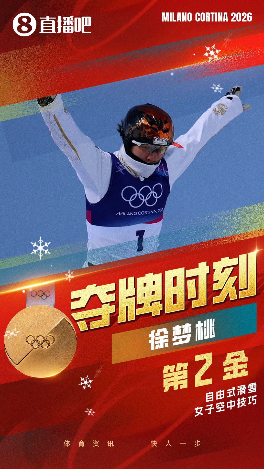 在2月18日举行的自由式滑雪女子空中技巧决赛中,五届冬奥会老将、现世界排名第一的徐梦桃重磅出击,她与队友孔凡钰、邵琪以及陈梅婷共同追逐荣耀。最终,徐梦桃成功卫冕,赢得金牌,邵琪勇夺铜牌,而孔凡钰以微弱差距屈居第四。