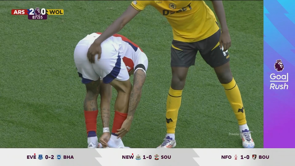 回顾二人之间的“恩怨情仇”,在2024-25赛季英超的首轮,阿森纳曾以2-0的比分击败狼队,耶森·莫斯克拉在那场比赛中表现突出,但他的行动同样引发了争议。他不仅对哈弗茨施以锁喉动作,还在与热苏斯的交锋中对对手进行了一些挑衅的行为,这为他与热苏斯之间的关系埋下了隐患。