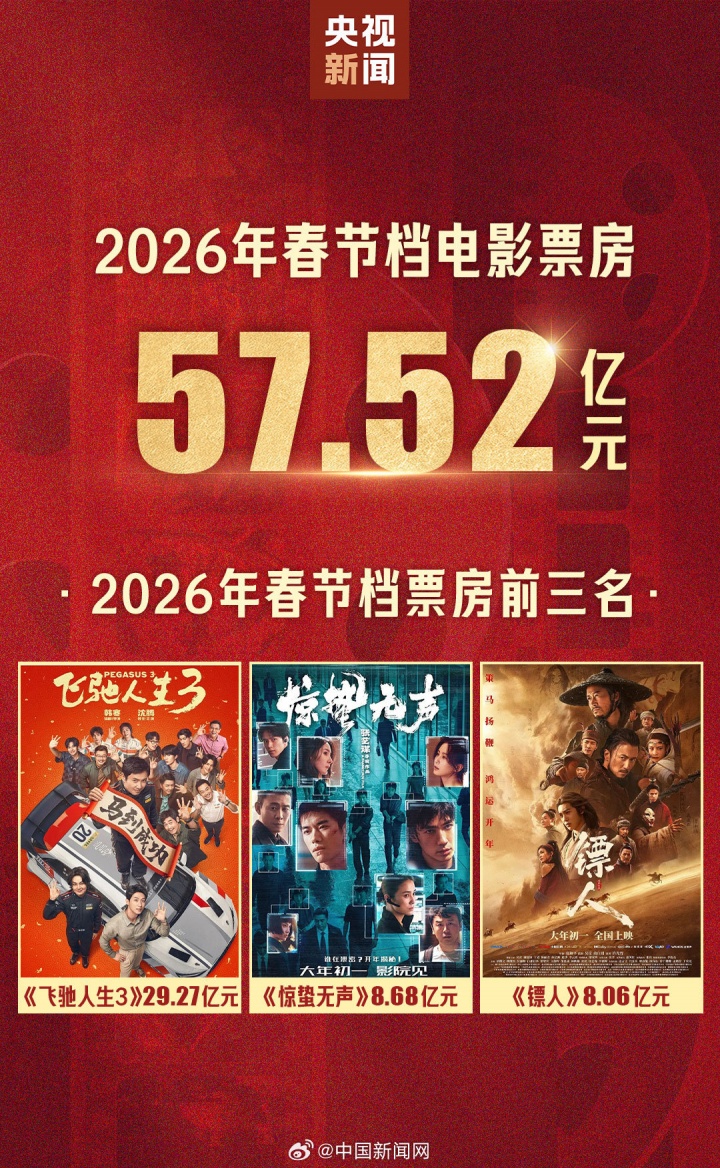 2026年春节假期的电影市场如同繁华的盛宴,最后的票房定格在了57.52亿元,令人振奋。这一成绩不仅为春节档画上圆满的句号,更为2026年的年度电影总票房打下了坚实的基础,整体突破了83亿元,彰显了中国电影市场的蓬勃生机。