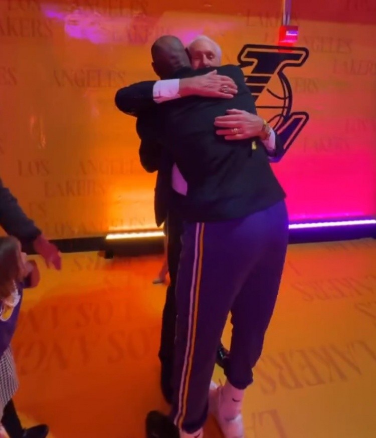 2月24日讯 昨天,湖队为传奇主帅帕特·莱利举办了雕像揭幕仪式。詹姆斯在比赛开始前,主动在球员通道中向这位曾经的教练送上祝贺,热火官方社交媒体也分享了两人温馨的拥抱瞬间。