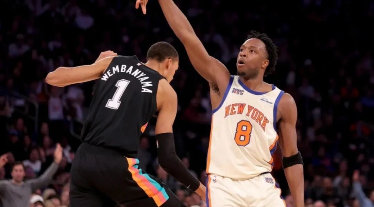 年轻的文班亚马再次展现了他的天赋,贡献了25分、13个篮板和4次封盖,然而对于尼克斯的防守,他似乎难以独自力挽狂澜。尼克斯采用了压迫性的防守策略,尤其是在外线,甚至宁愿冒险让对手突破,也要通过补位犯规来限制马刺的投篮。马刺的三分球命中率低得让人痛心,今天他们34次出手,仅命中9球,表现十分糟糕。
