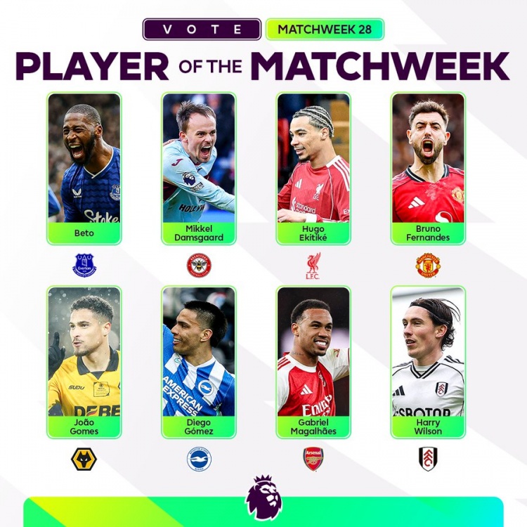 英超官方在3月2日公布了第28轮最佳球员的提名名单,其中包括了埃基蒂克、B费、加布里埃尔等八位表现出色的球员。每一位候选者都有着自己闪光的时刻,将比赛的精彩瞬间展现得淋漓尽致。