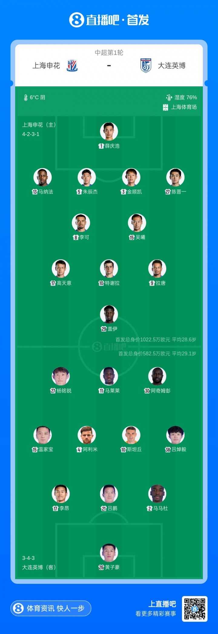 回顾上赛季,申花表现不俗,终于摘得中超亚军的荣耀,而英博则以11位的排名收官。本赛季开赛前,申花由于违反规定遭受了10分的处罚,这无疑给他们的争冠之路增添了麻烦。而大连英博则在这个冬窗中并没有面临处罚,他们可以以完整的阵容继续向前迈进。