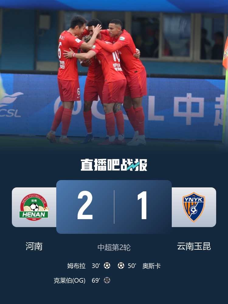 在3月15日下午15:30举行的中超联赛第2轮比赛中,河南队在郑州航海体育场迎战云南玉昆。比赛气氛热烈,上半场姆布拉经历了几次错失良机,但终于在关键时刻抓住机会,帮助河南取得领先。下半场,虽然姆布拉再次未能把握住单刀机会,但云南的奥斯卡凭借精彩的进球将比分扳平,随后发生了令人意外的乌龙球,最终河南以2-1战胜云南玉昆。