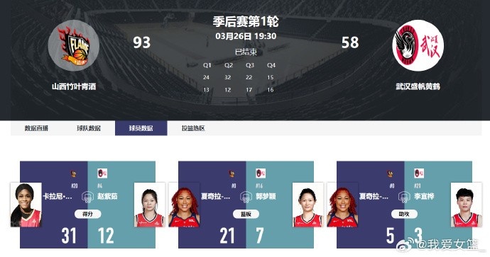 在刚刚结束的WCBA季后赛中,山西竹叶青酒女篮在主场表现出色,以93-58战胜了武汉盛帆黄鹤,成功取得开门红。