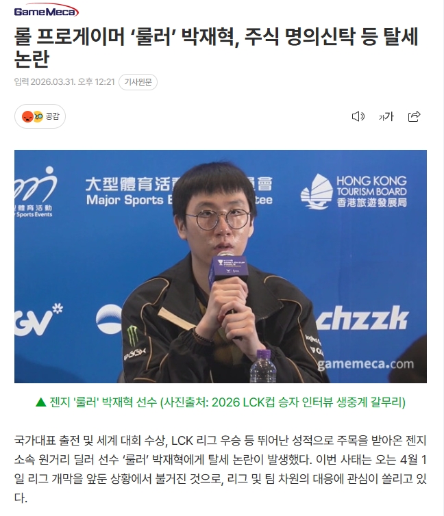 多家知名媒体的报道更是直指事件的核心,Gamemeca指出Ruler卷入的逃税问题与股票信托相关。而《朝鲜日报》则通过对比Ruler手握亚运金牌和兵役豁免的辉煌成就,强调了他此刻身陷逃税困扰所带来的强烈反差。Naver新闻同样对Ruler遭遇的逃税指控进行了关注,认为这对于他这样的职业选手来说可谓是个致命打击。