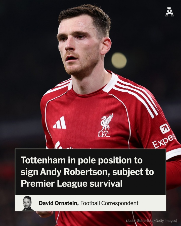 据著名记者奥恩斯坦的消息,热刺在争夺罗伯逊的竞争中处于领先地位,但前提条件是他们必须确保在英超联赛中保级成功。消息指出,热刺希望在今夏以自由转会的方式签下罗伯逊,而这位球员将在结束自己在利物浦长达9年的职业生涯后离队。